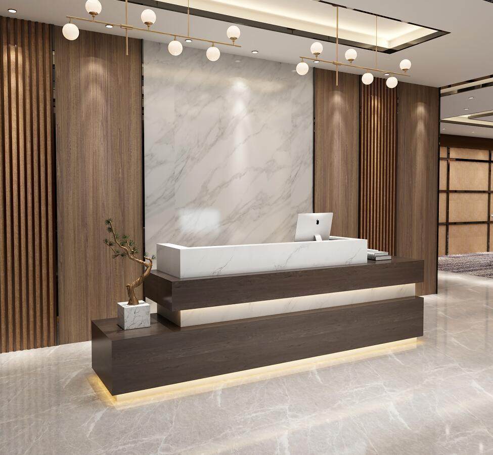 前台收银台公司前台接待简约现代办公桌大理石烤漆收银台