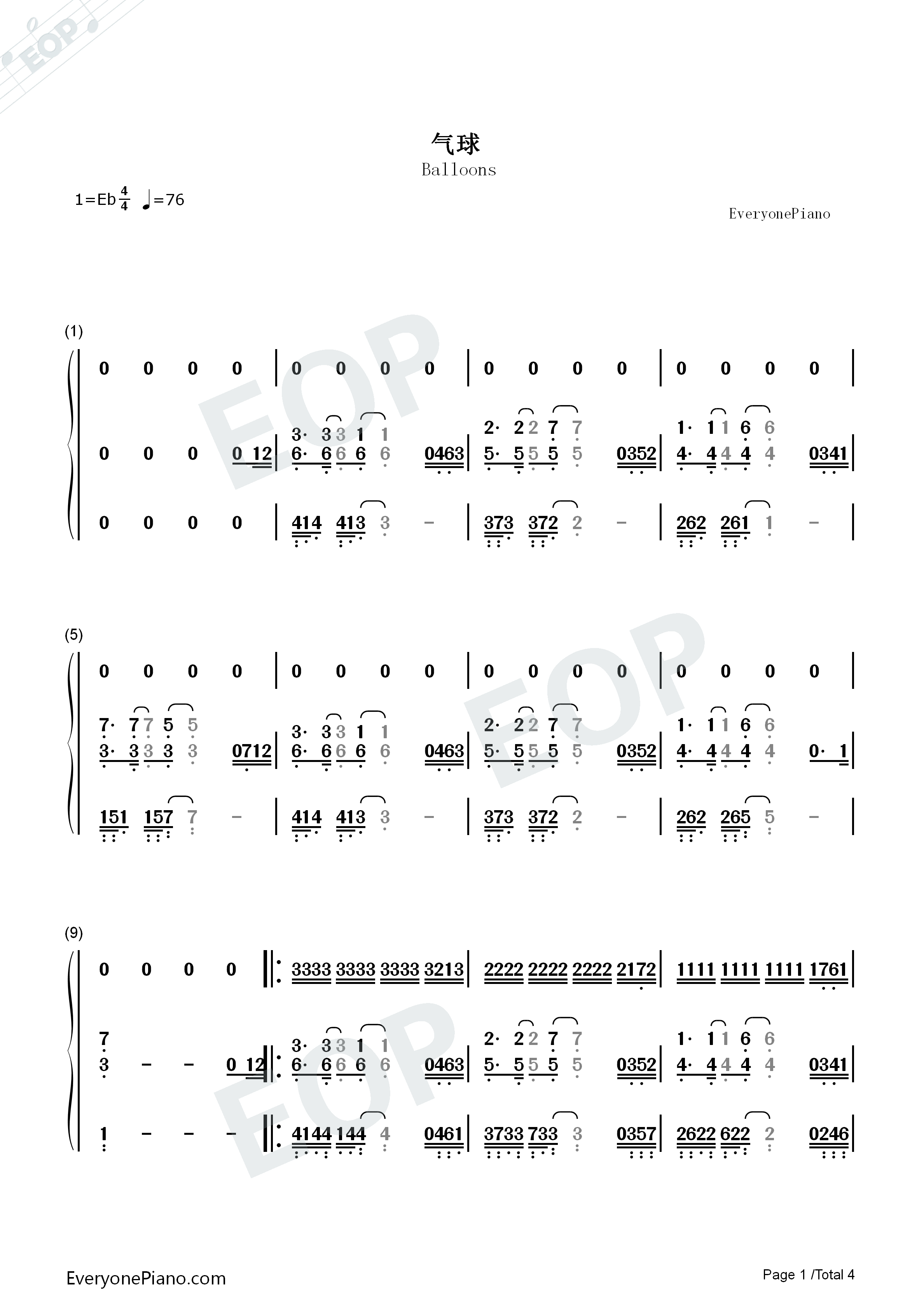 钢琴谱:气球
