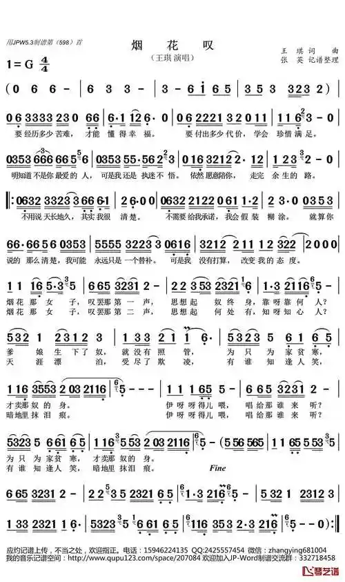 烟花叹简谱(歌词)-王琪演唱-张英曲谱1