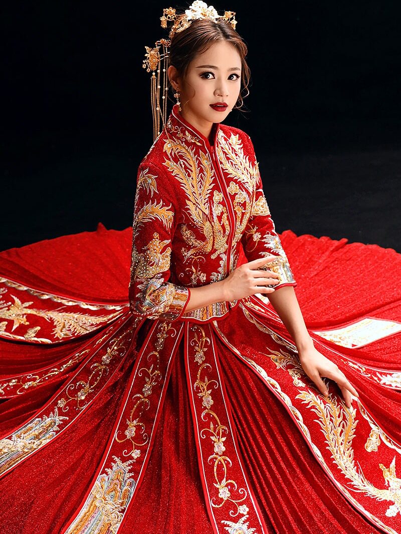 秀禾服新娘礼服嫁衣秋冬款结婚古装复古旗袍长袖敬酒服中式龙凤褂