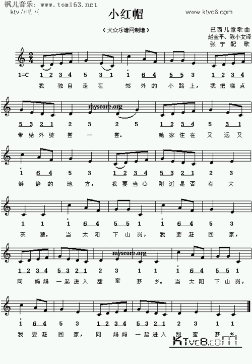 小红帽(巴西儿童歌曲)_歌谱简谱_哆来咪123曲谱网
