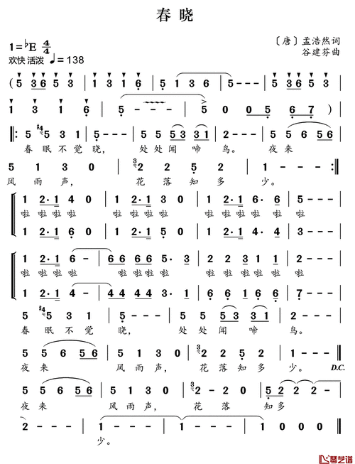 春晓简谱(歌词)-儿歌-好心情曲谱1