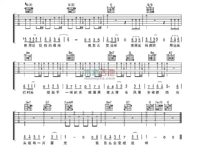 一样的月光吉他谱-弹唱谱-c调-虫虫吉他