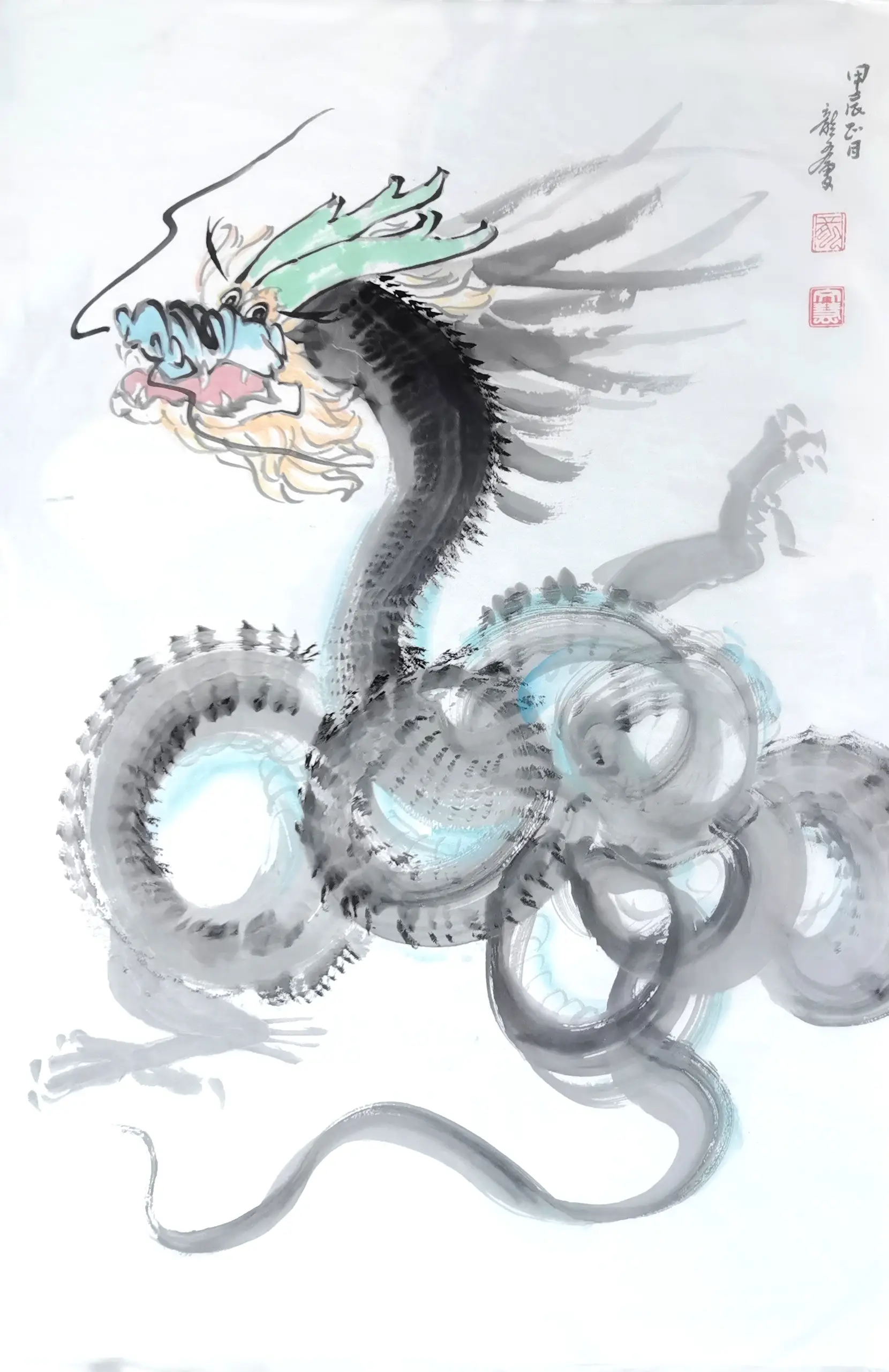 画龙步骤6:落款,中国画的题款在画面中起着重要的作用,对画面的平衡和