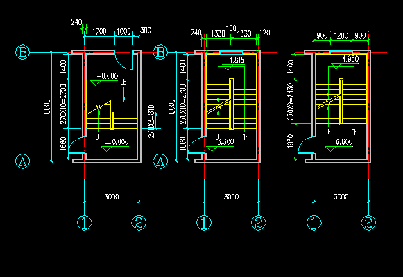 请专业人士帮我画出楼梯图.一定要专业.平面图,立面图