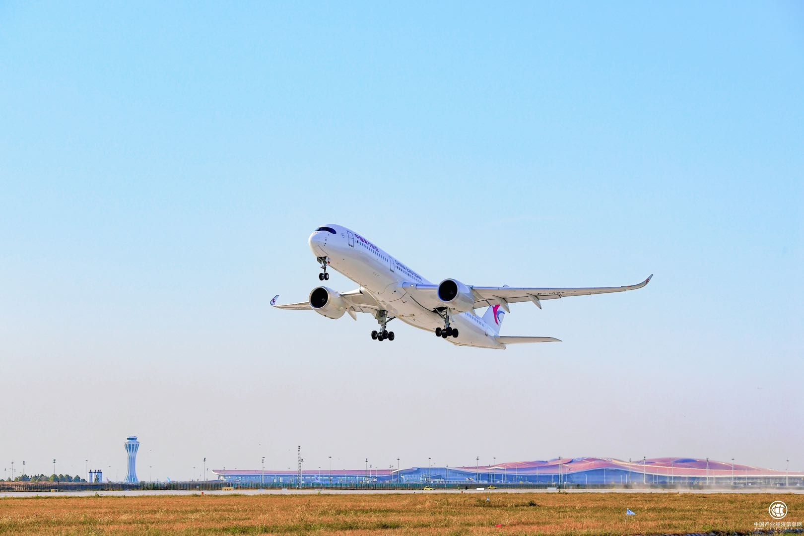 图:东航a350-900飞机从大兴机场起飞(摄影:唐青昆)