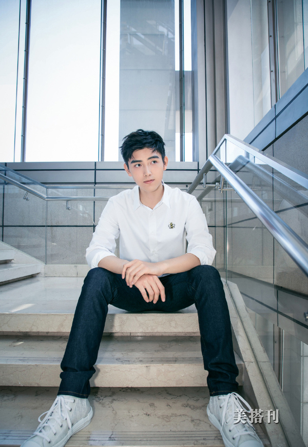 陈飞宇身穿白色衬衫,干净又纯粹