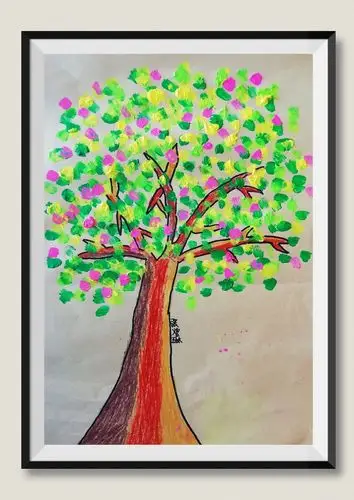 儿童美术|点彩画教学 树 亲子教育 幼儿园绘画
