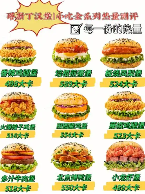 塔斯汀中国汉堡小吃全系列热量测评