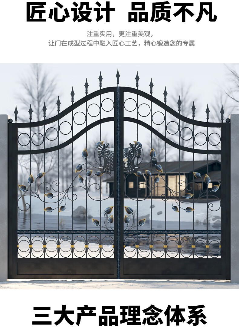 欧式铁艺大门庭院门铁艺门别墅大门乡村农村家用户外双开门花园门艺术