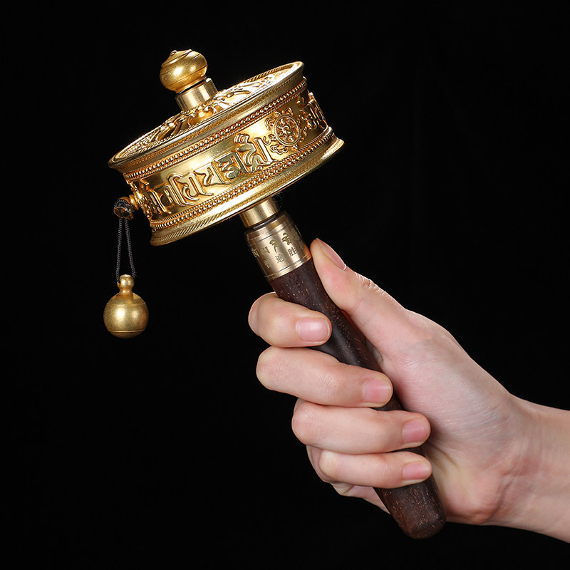 手摇转经轮家用纯铜观音心咒4.5万遍佛教转金桶西藏式手摇转经筒