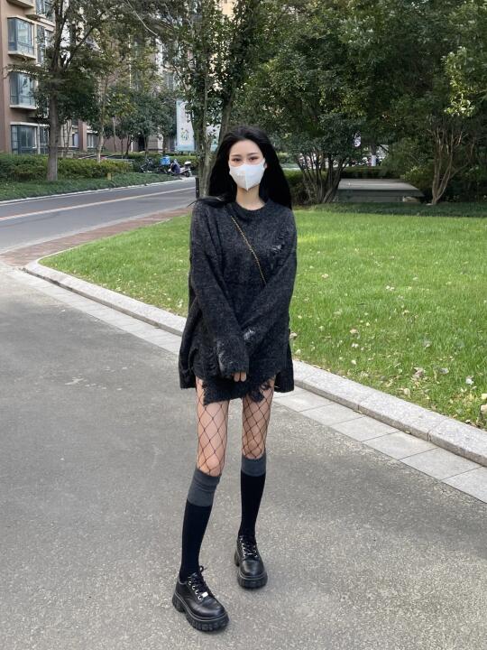 学姐教穿搭:黑色渔网袜搭配什么颜色的上衣更好看?