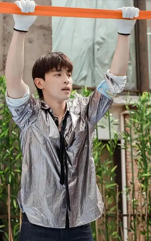 邓伦穿白衬衫搭粉裤子 一脸呆萌少年感十足