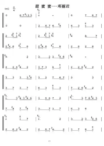 邓丽君 甜蜜蜜 初学者c调简易版 钢琴双手简谱 钢琴简谱 钢琴谱