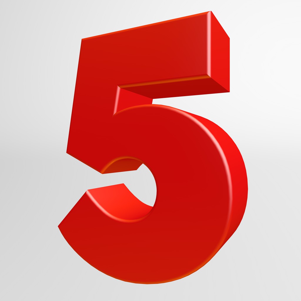 白色背景上的红色数字五