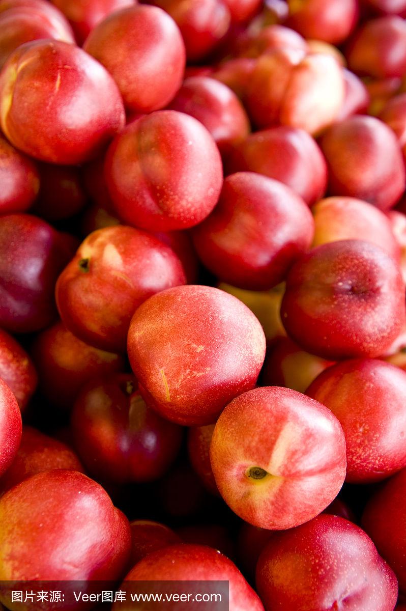 一堆成熟的红油桃