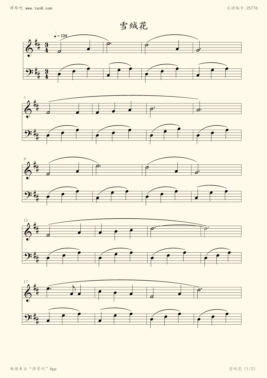《雪绒花,钢琴谱》未知|弹吧|钢琴谱|吉他谱|钢琴曲|乐谱|五线谱|高清