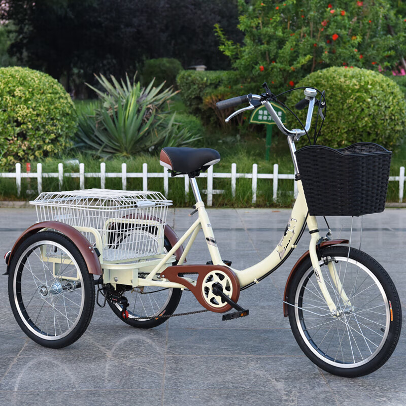 新款 折叠脚踏三轮车变速 人力脚蹬车 老年菜篮车 20英寸自行车