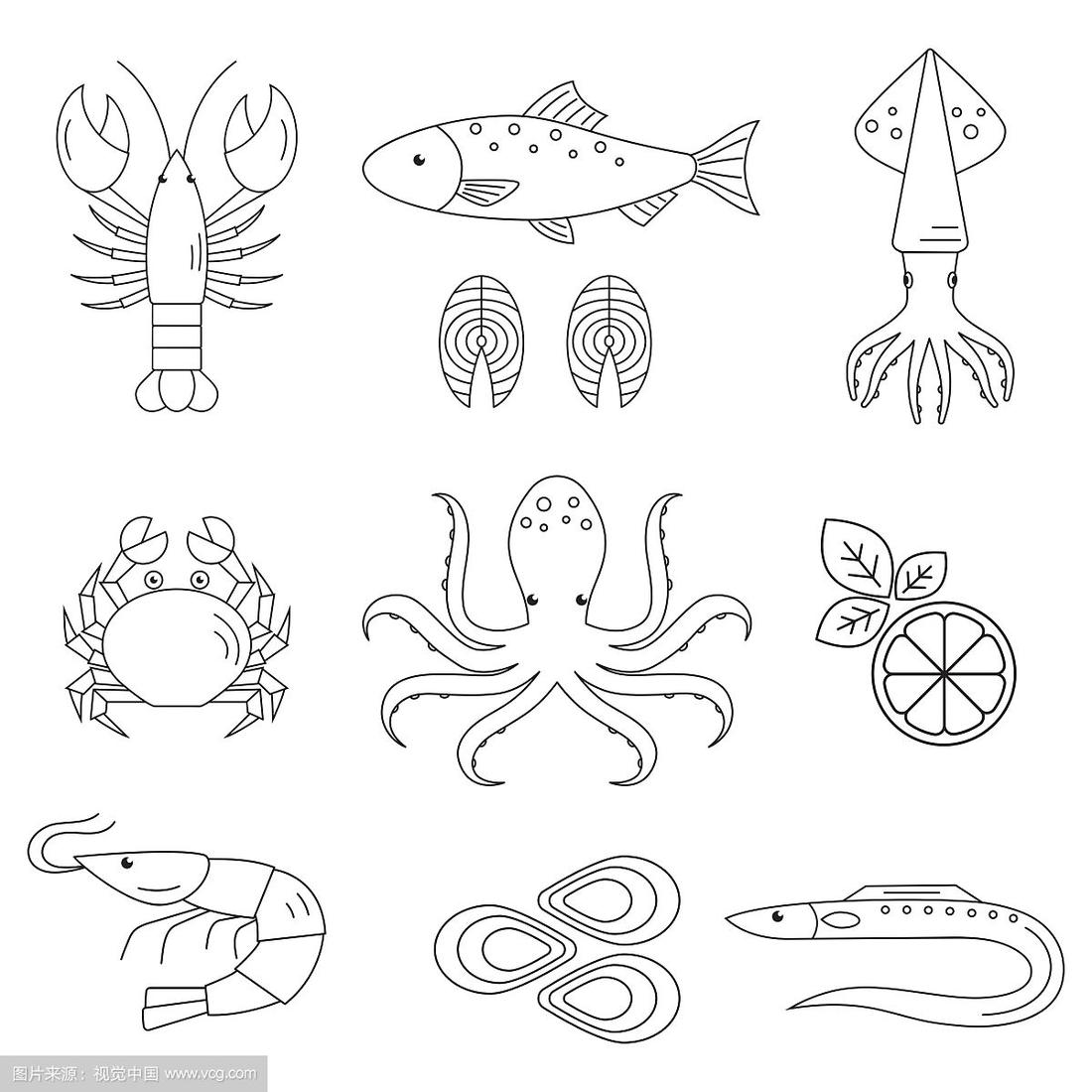 海鲜图标矢量格式eps10