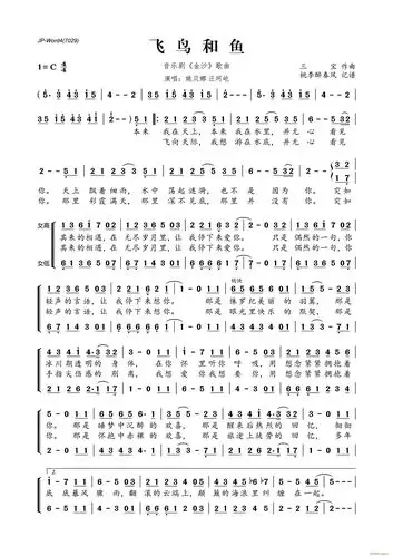 飞鸟和鱼_简谱_搜谱网