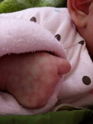 8个多月的宝宝身上长了很多红色斑块,请助!