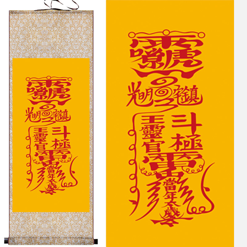王灵官镇宅辟邪符丝绸卷 驱魔咒 符咒道教用品 卷轴挂画 国画特价