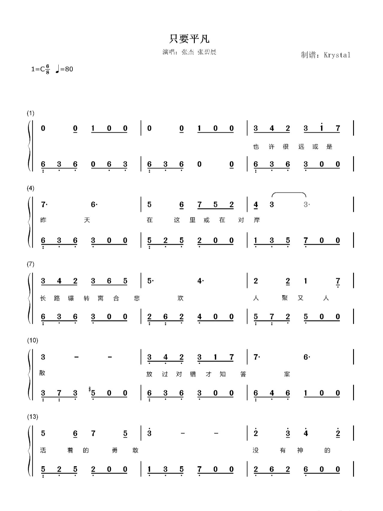 春日图文伙伴计划 张杰/张碧晨《只要平凡》需要高清谱的私信 - 抖音