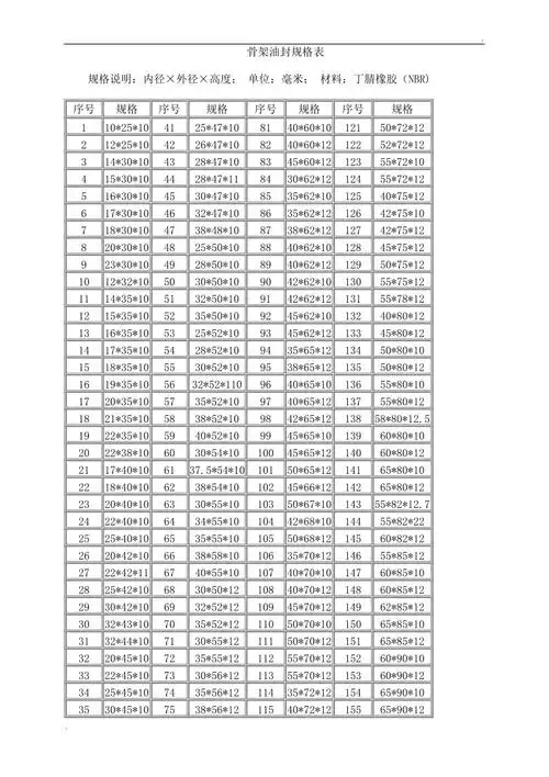 骨架油封规格表