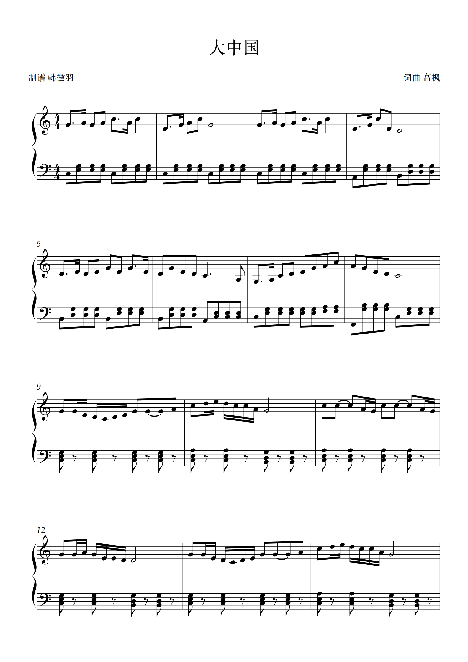大中国,大中国钢琴谱,大中国c调钢琴谱,大中国钢琴谱大全,虫虫钢琴谱