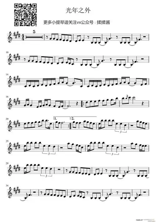 光年之外-《太空旅客》中文主题曲五线谱预览1