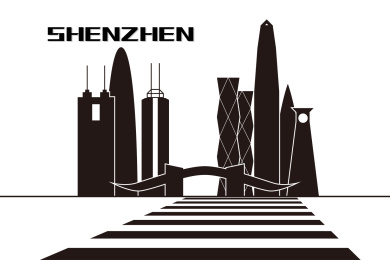 深圳地标性建筑矢量黑白插画