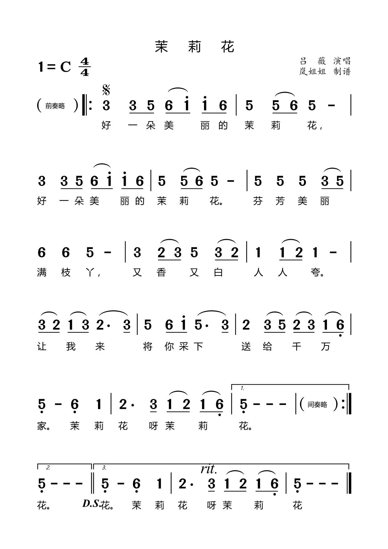 茉莉花歌词简谱_简谱_曲谱_听懂音律