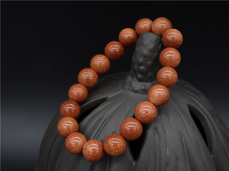 满砂金砂石手链 金星石金砂石手串 展销会礼品大颗粒14mm单圈佛珠