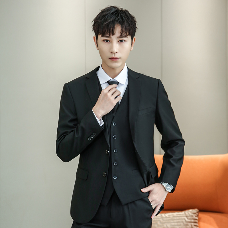 礼服休闲西服外套男早春男士男生春款男式黑色三件套西装马甲西裤xl