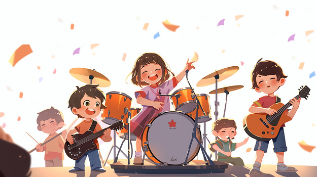 卡通可爱少儿小乐队演奏