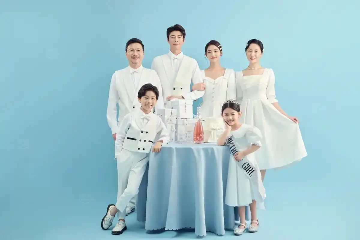 干净温馨92简约高级的一家六口全家福