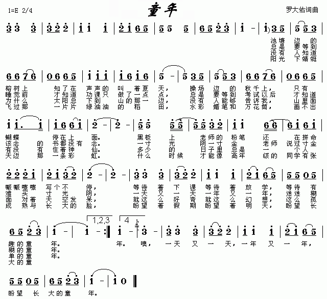 《童年》歌谱歌词-明明简谱网