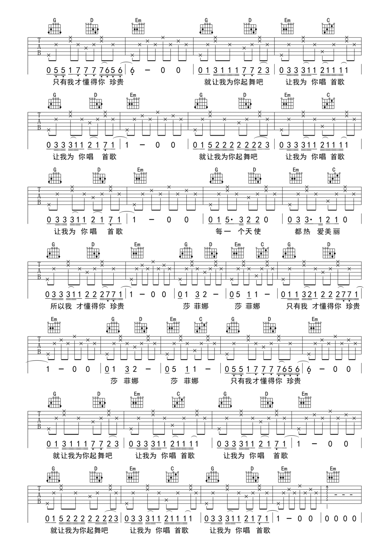 「动态曲谱」适合吉他新手的弹唱练习《为你唱首歌》