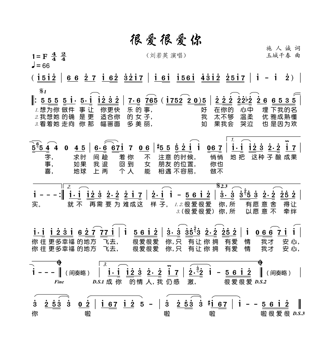 很爱很爱你_歌谱简谱_哆来咪123曲谱网