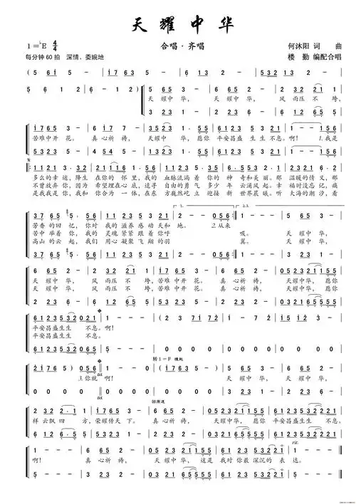 天耀中华(合唱)_简谱
