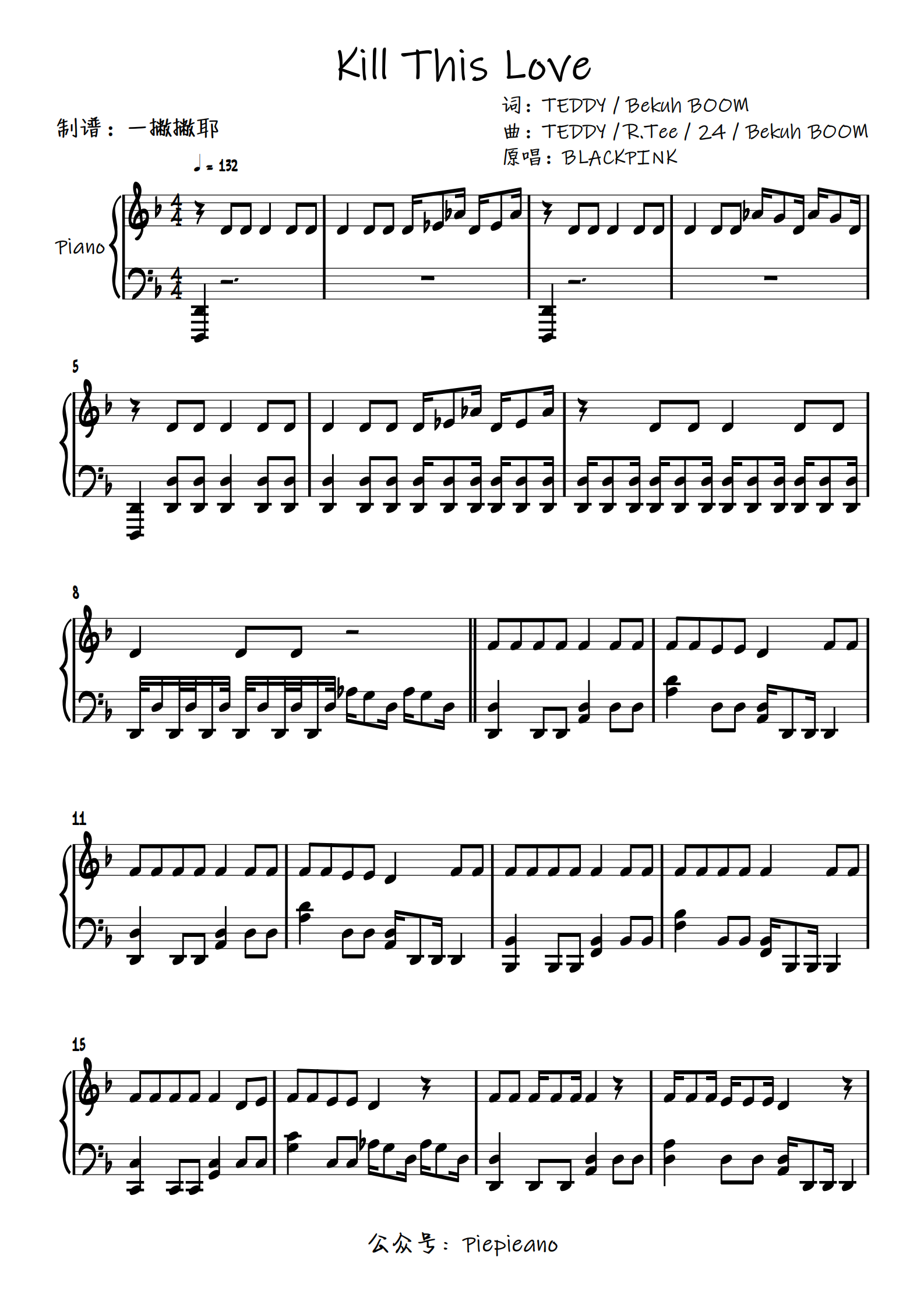 kill this love【独奏谱】blackpink粉墨「一撇撇耶」钢琴谱-虫虫钢琴