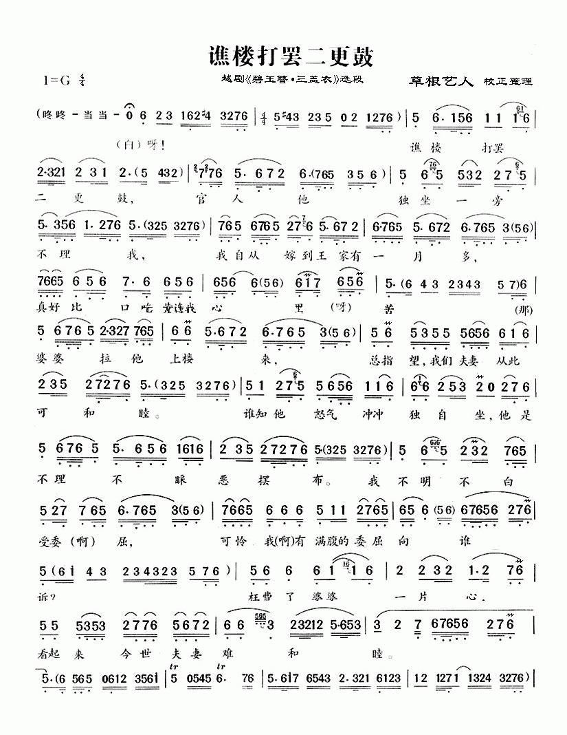 谯楼打罢二更鼓(越剧《碧玉簪》唱段)简谱