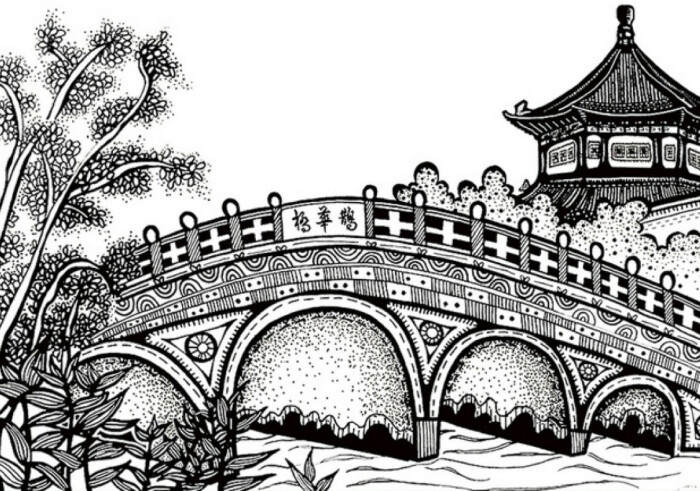 提字选不好位置,真的很影响画面啊#风景速写 #白描 #速写