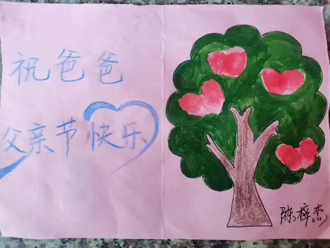 小班宝贝绘制的节日贺卡送给爸爸.