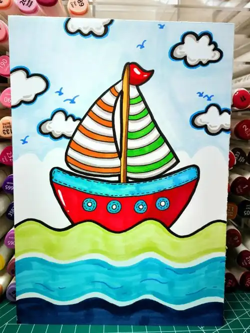 帆船大海马克笔手绘简笔画