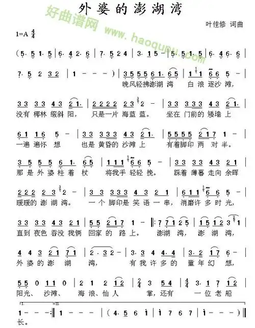 外婆的澎湖湾 潘安邦 歌谱 简谱
