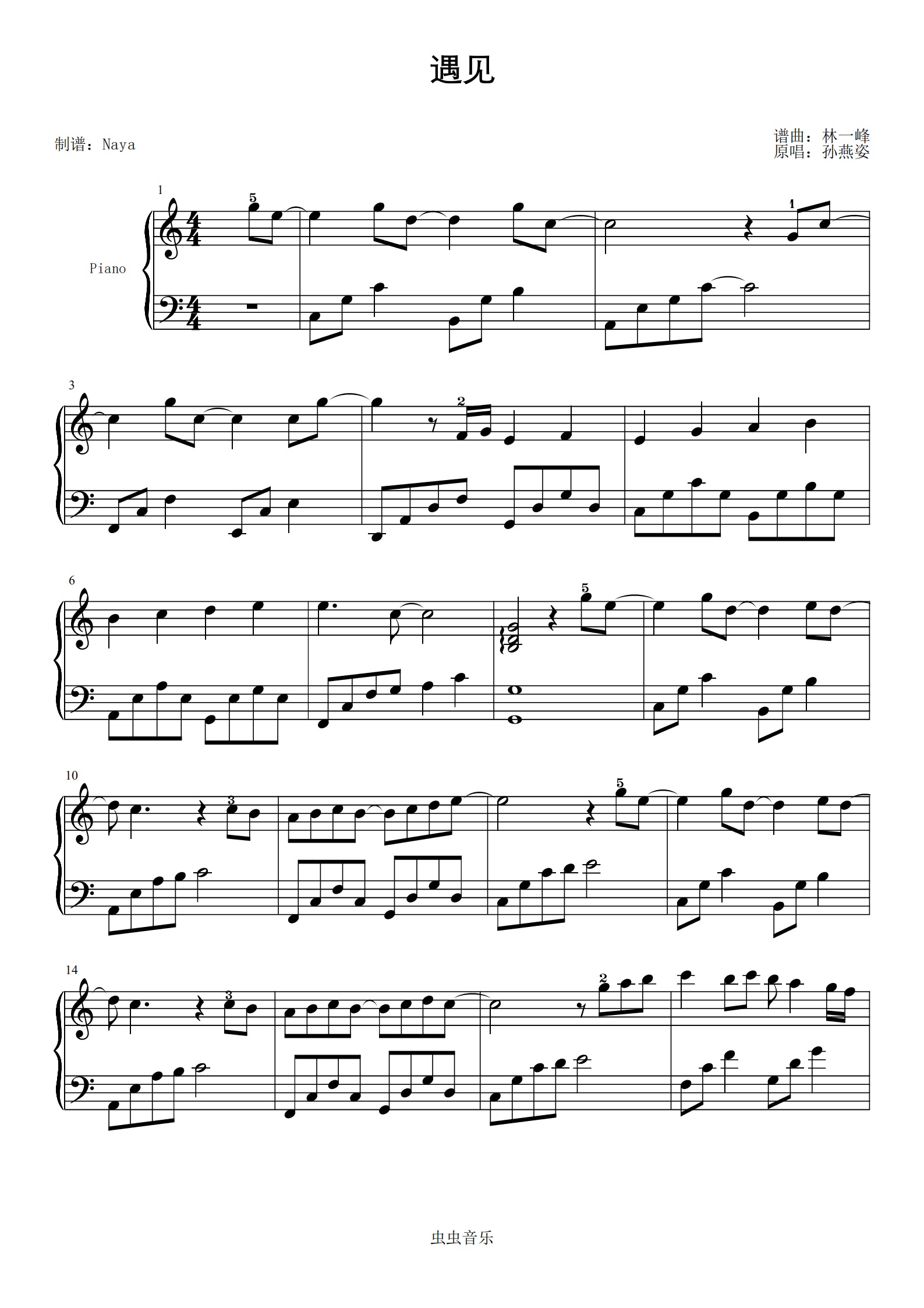 遇见钢琴谱-c调-虫虫钢琴