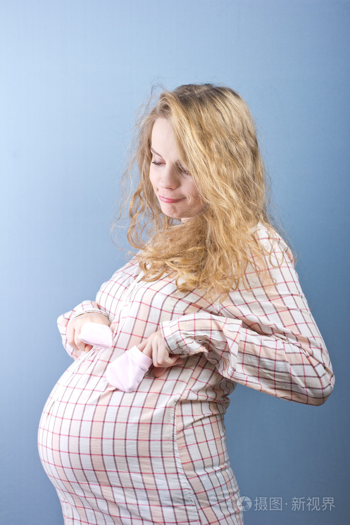 在工作室里大肚子的怀孕女孩照片-正版商用图片2bo863-摄图新视界