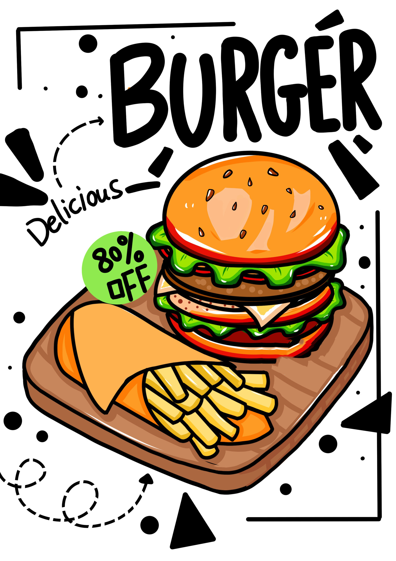 打卡30/100儿童画 《汉堡套餐》高清(附线稿 尺寸:a465工具:ipad