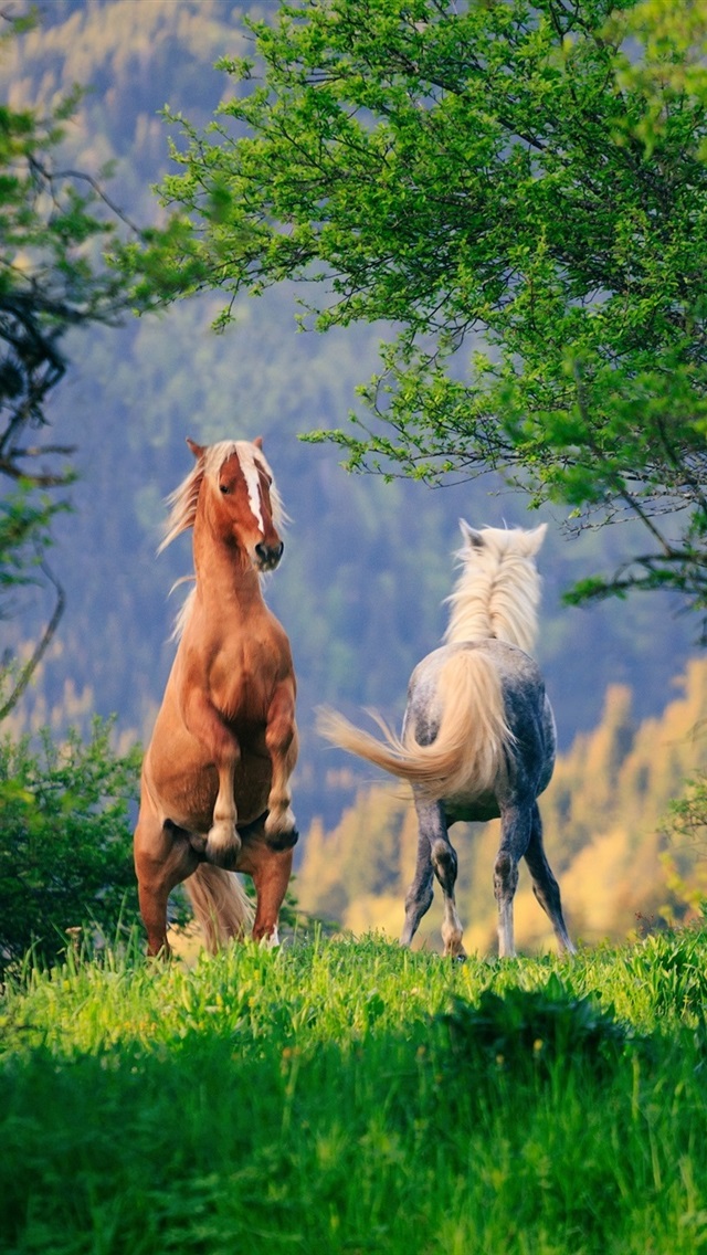 壁纸 两匹马,草,树,绿色 1920x1440 hd 高清壁纸, 图片, 照片